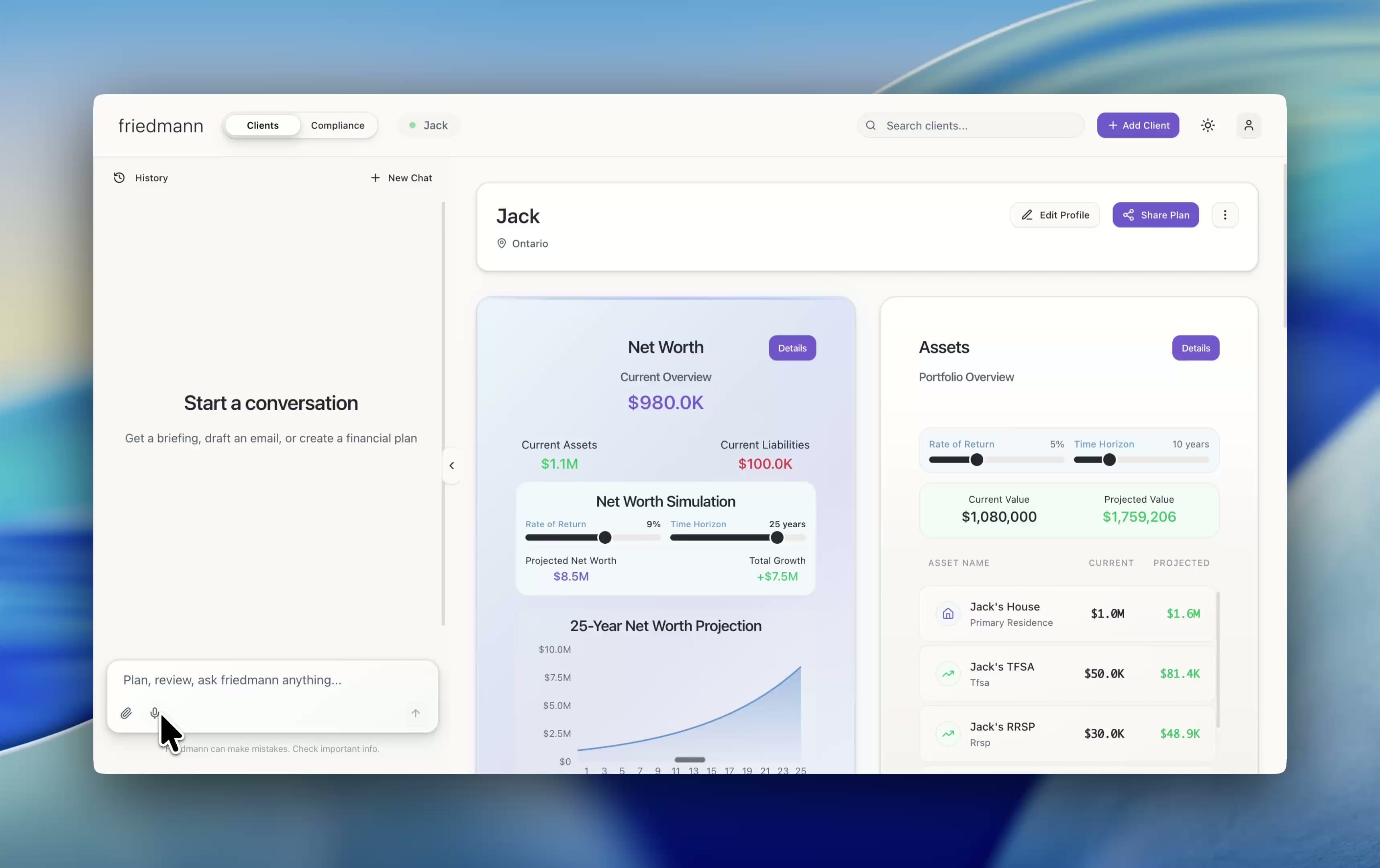 Easily build plans, update client profiles, and analyze complex financial situations — with just your voice.